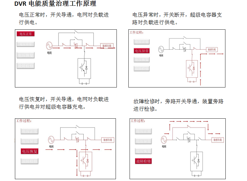 可對電壓暫升、電壓暫降都進行保護,并進行補償;快速切換時間小于100us,全功率響應小于5ms;0-100%剩余電壓至100%額定電壓完美補償;儲能器件為超級電容器,免維護;安全性能高;可靠性高。